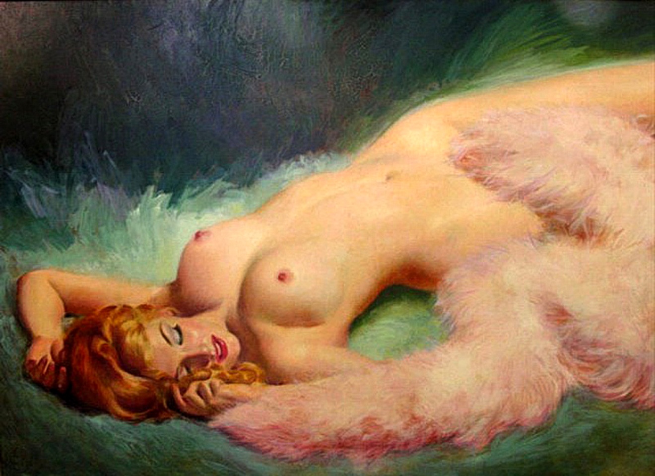 Anyway, speaking of naked ladies, today's wallpaper is this superbly tactile painting by Earl Moran, which I found in my pin-up section of my PC when looking for a suitable Easter picture for my Facebook page yesterday. Moran (1893-1984) discovered a young lady named Norma Jean Dougherty and she modelled for him for four years from 1949. They remained friends even after she became Marilyn Monroe. Already an established pin-up artist, he had been doing calendars for Brown & Bigelow since 1932 and a 1940 Life feature on him made him a huge star. In those days, in a calendar of 12 pictures, the publishers would allow the artist to include onc nude a year and Moran's were more sensual than any others. Later in his life he concentrated solely on nudes and this one comes from that period, dating from around 1970. Nearly all of his work was in pastels, amazingly.